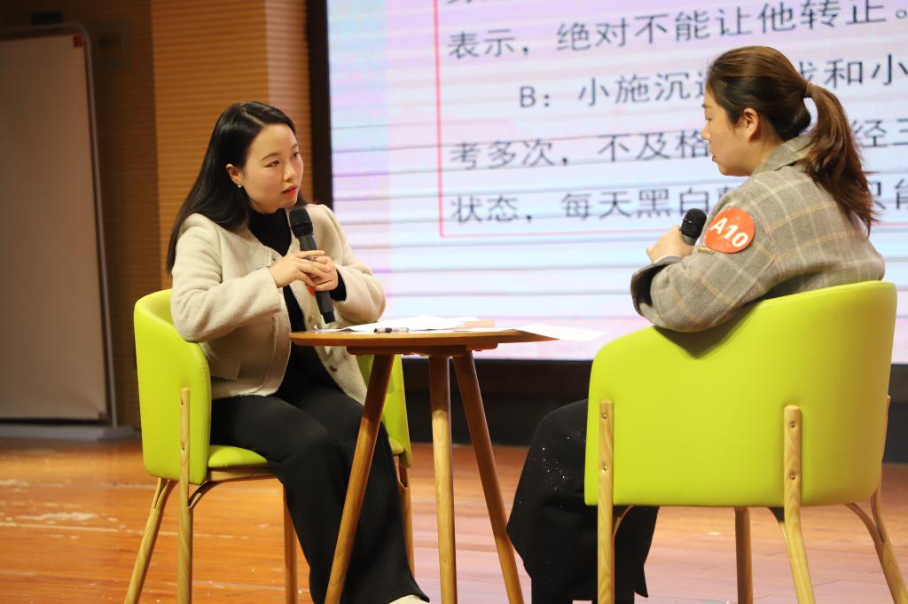“谈心谈话”环节,采用AB角情景模拟的形式还原辅导员与学生交流的场景。比赛现场,各位辅导员面对“学业焦虑”“职业迷茫”“心理困惑”等各种突发性和挑战性问题时,通过沟通交流和心理辅导,认真倾听学生的问题、安抚情绪,并积极为其所遇到的问题提供解诀方案,逐步引导学生走出困境。