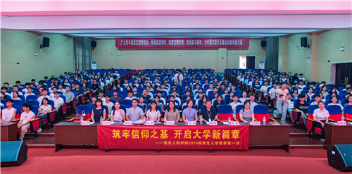 本网讯 “妈,我走了,救国如救火,待天下太平,儿再尽孝!”杨靖宇将军这深情而决绝的话语,穿越时空,叩击着每一位新生的心灵。在宣讲员真挚而坚定的讲述中,信息工程学院2025级新生入学教育第一课温情启幕。学院全体领导、学生党支部书记、新生辅导员、2025级全体新生参加大会。