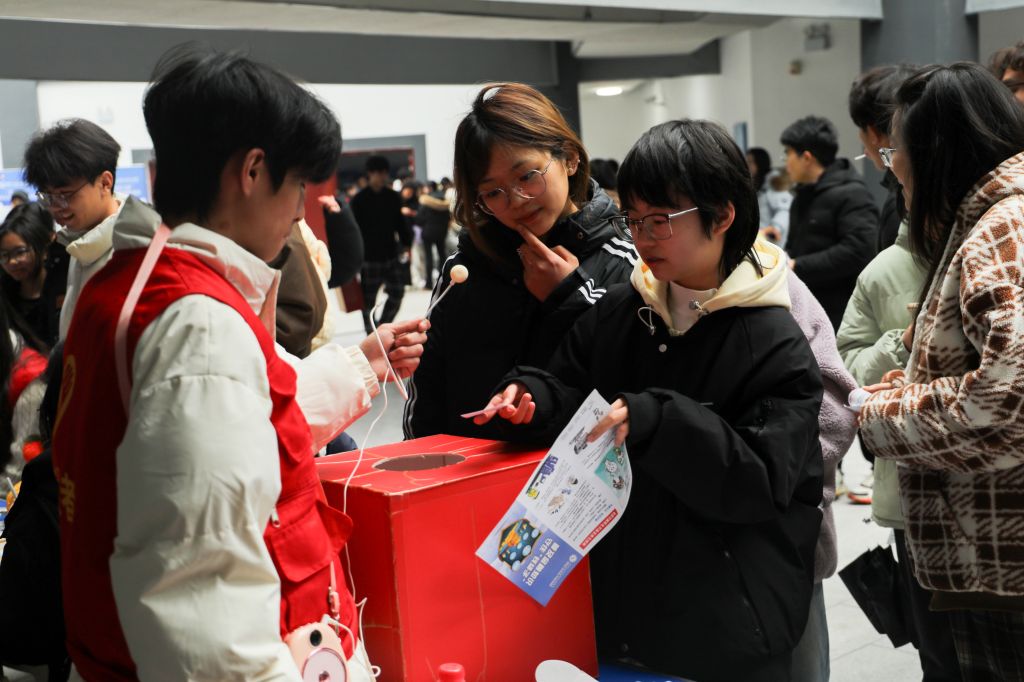 “黄金四分钟,你会做心肺复苏吗?”校团委开设的“‘救’在身边”校园急救知识宣讲摊位被围得里三层外三层。志愿者们利用模拟人,一边讲解一边演示,从胸外按压到人工呼吸,每一个细节都力求精准。不少同学在指导下亲自上手操作,现场学习气氛热烈。“学了急救技能,关键时刻能救命,这种志愿服务太硬核了!”物联网25-1班的杨娟华擦着额头的汗说道。