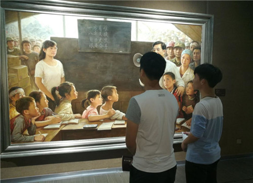 李自健美术馆是由著名旅美画家李自健、丹慧夫妇投资创建的国内外最具规模的现代化公益美术馆。美术馆内参观的一幅幅精美的画作展现了新中国从站起来到强起来到富起来的历史进程,同学们感触最深的是南京大屠杀、汶川大地震和现代精准扶贫三个系列的画作。