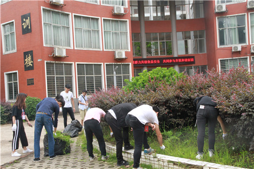本网讯 6月3日上午,第66、67期入党积极分子培训班学员早早赶到新纪元广场集合,共同对校园进行全方位的卫生清理。第66期入党积极分子主要负责新纪元广场内的杂草和垃圾清理,第67期入党积极分子则分为十组,分工清理校内各个卫生死角。