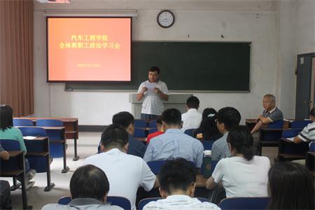 本网讯 6月20日下午,汽车工程学院党总支在2105教室组织开展全体教职工政治理论学习,汽车工程学院全体教职工参加学习。学习会由党总支书记周理主持。