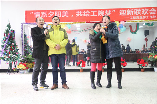 本网讯 12月28日,我院离退休工作处组织全院离退休教职工在老校区活动中心举行“情系夕阳美,共绘工院梦”迎新联欢会,两百六十余名离退休老同志欢聚一堂,喜迎元旦。