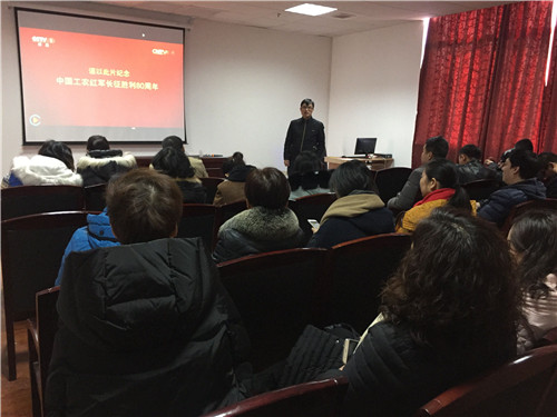 本网讯 为纪念中国工农红军长征胜利八十周年,学习长征精神,走好自己的长征路,12月27日下午,信息继教党总支组织全体职工在图书馆10楼会议室集中观看了文献纪录片《长征》。