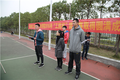 龙文宣布2016年“工院杯”学生篮球赛开幕。