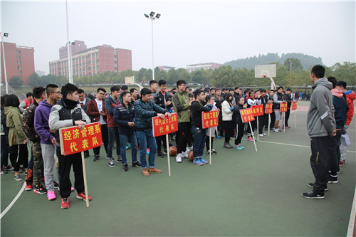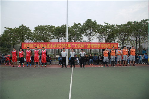 本网讯 12月2日,由体育艺术部主办,院裁委、院文体部联合承办的2016年“工院杯”学生篮球赛开幕式在室外灯光球场举行。体育艺术部老师袁野、龙文、刘星欣以及各系(院)参赛队伍参加本次开幕式。