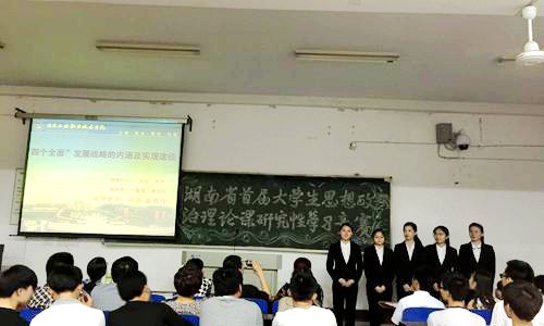 比赛设立四大主题:即中国特色社会主义道路的优势;“中国梦”之“国家梦”与“个人梦”的关系;“四个全面”发展战略的内涵及实现途径;新常态下中国特色社会主义外交新战略的特点。每个参赛小组从中任选一个主题参赛,竞赛过程分为学习成果展示和问辩两个环节。其中展示环节由学生依据学习型研究成果对研究内容进行介绍,问辩环节则由评委提问,选手依据展示内容进行回答。