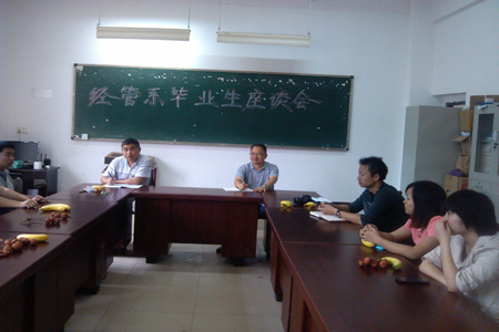 本网讯 6月5日上午,经济管理系2014届电子商务及营销与策划专业毕业生座谈会在电子商务教研室举行。经济管理系党总支书记孟正文、副主任杜飞明、电子商务教研室主任周朕出席座谈会,辅导员及返校毕业生代表参加了本次座谈会。