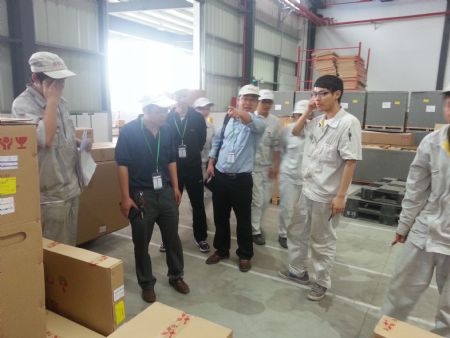 调研组专业教师在企业收货缓存区现场指导学生实习