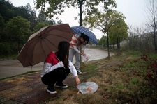 随着“博世路”上和路旁草地上的垃圾被逐渐清理干净,记者团成员们脸上露出自豪的笑容。没来得及休息片刻,学生记者们继续来到下一个活动地点清除垃圾。经过一下午的“冒雨奋战”,环鹤鸣山的道路沿线都变得干净整洁起来。