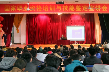 皮阳文就国家职业资格证书制度、类别、重要性等向在场师生做了详细讲解,并现场回答了同学们的疑问。他将学科教育与职业教育作对比,强调职业技能对于职业院校学生的重要性;他生动阐述了职业资格证的重要作用,希望同学们进一步提高对职业教育的认识,真正理解职业资格证书制度实施的必要性。我院培训鉴定中心刘魁老师就考证的准备工作、报考流程、注意事项等向大家做了说明。电气工程系李德尧副主任就培训方案、课时调整等方面向同学们作了讲解和说明。