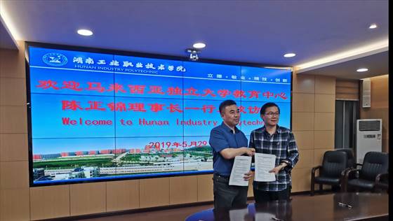 本网讯 5月29日下午,马来西亚独立大学教育中心理事长陈正锦一行五人来我校参观交流,洽谈两校间的国际合作事宜。我校与马来西亚独立大学教育中心签署了马来西亚留学生招生协议,希望通过合作,给来华的马来西亚留学生创造更多的教育和就业机会,并协助我校与在马中资企业建立校企合作关系。