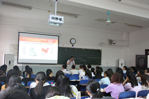 向洪老师主讲《盛世华诞 建国70周年》,他讲述到,习近平总书记在南开大学调研时特别提到了张伯苓老校长的“爱国三问——你是中国人吗?你爱中国吗?你愿意中国好吗?”,以此启发同学们的思考和热烈讨论。45分钟时间内,向洪老师讲述了新中国七十年来的辉煌历程,引用了新中国妇女解放运动、文盲“扫盲行动”、“上甘岭战役”等视频和故事,生动展现了中国人民不屈不挠、拼搏奋斗的优良传统。