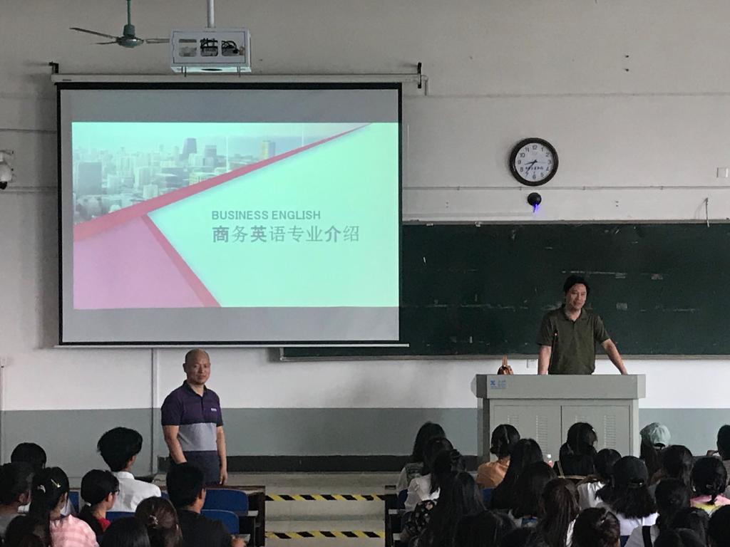 商务贸易学院领导,各教研室负责人、相关教师,新生辅导员及500多名国内、国际新生一起参加了这场富有“诗意”的入学教育课。