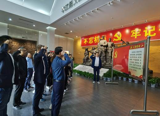 全体教师党员在起义纪念馆前庄严重温入党誓词