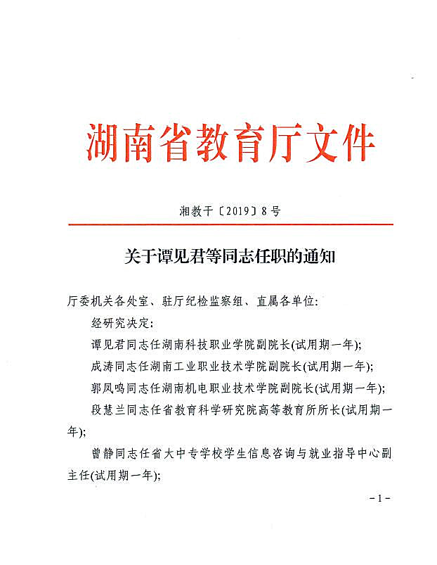 关于成涛同志任职的通知