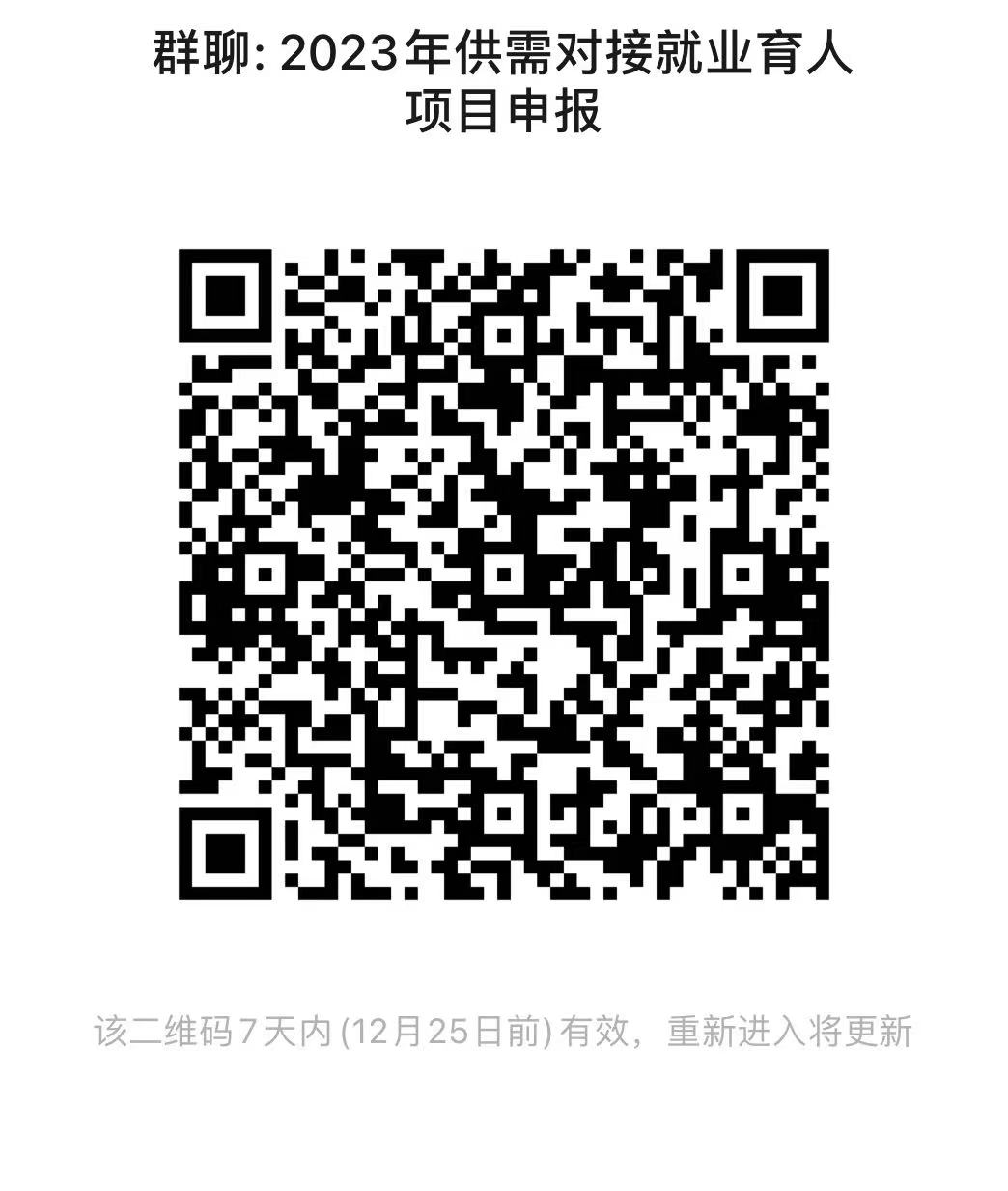 首次登录教育部供需对接就业育人项目平台需开通学校个人用户。有意申报的教职工请使用微信扫描通知末端二维码加入“2023年供需对接就业育人项目申报”微信群,进群后联系群主填写相关信息开通账号。