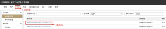 第二步:在菜单栏点击“项目”,选择“国家级职业教育培训基地2025项目”。