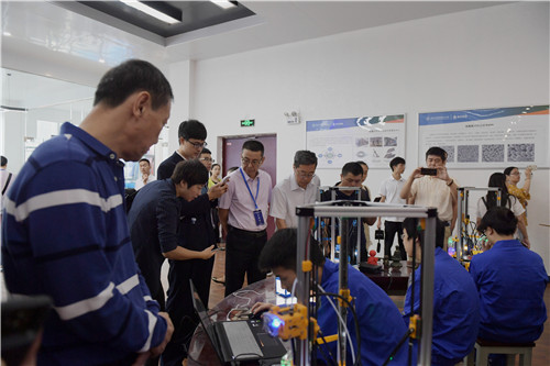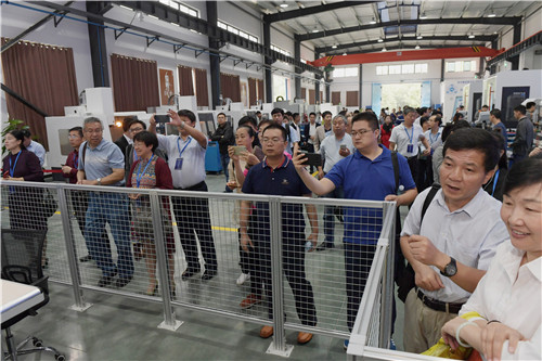 与会人员走进学校机械实训楼、数控技术实训中心、汽车实训楼,参观了机器人编程与拆装区、多轴加工区、智能产线加工区、数控车床与铣床实训区、汽车销售与维修实训中心、顶立3D打印学院等实训室,对学校产教融合校企合作的做法与经验表示赞赏。