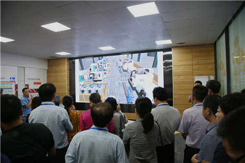 参观智能产线加工区的总控室
