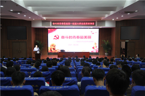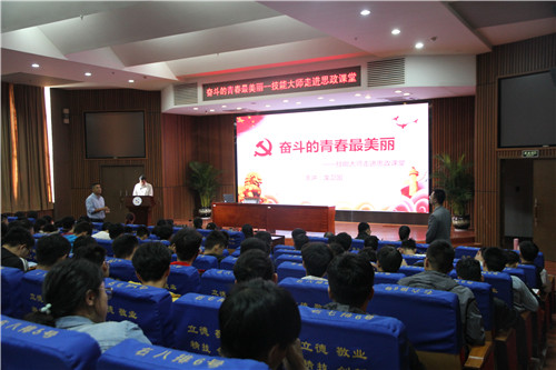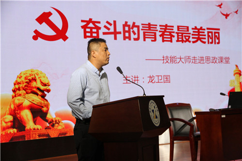 本网讯 10月10日下午,省劳动模范、国务院政府特殊津贴专家、我校2001届电气自动化专业毕业生、大师工作室技能大师龙卫国应邀走进思政课堂,为我校300余名大一、大二学生作了主题为“奋斗的青春最美丽”精彩讲座。