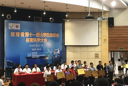 本网讯 9月6日-7日,湖南省第十一届大学生运动会体育科学大会在湖南工业大学隆重召开。大会表彰了湖南省第十一届大学生运动会科学大会征文比赛获奖团队和个人。我校体育老师积极参与、踊跃投稿,获得高职组团体一等奖,张涛、袁野、侯勇获得个人三等奖,黄雯、曾盛誉、曾石山等获得个人优胜奖。