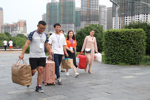 校园内随处可见新鲜面孔,新生和家长们或按报到指引标志或由迎新志愿者带领前往报到流程的相应地点,依次有序完成资格审查、缴学杂费或标注学杂费批扣情况、自愿领取床上用品、办理团/党组织关系迁移、提交个人纸质档案、安排入住学生公寓等手续。
