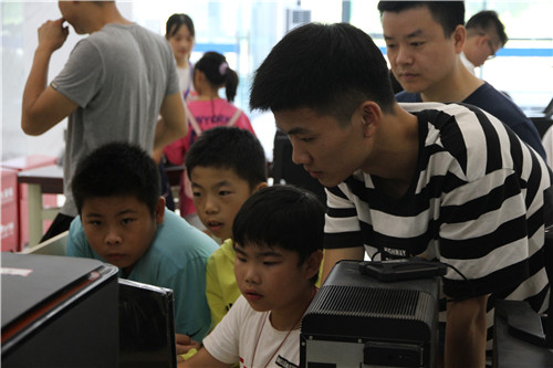 同学们在老师指导下操作电脑设计打印模型
