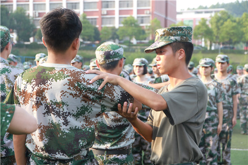 训练时,他们头顶烈日挥洒汗水,个个神采奕奕,斗志昂扬。军姿站不稳,军帽端不平,走路不整齐等一系列不标准的动作在教官示范、手把手挨个纠正下,慢慢显露出军人的身影。