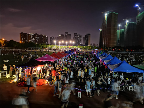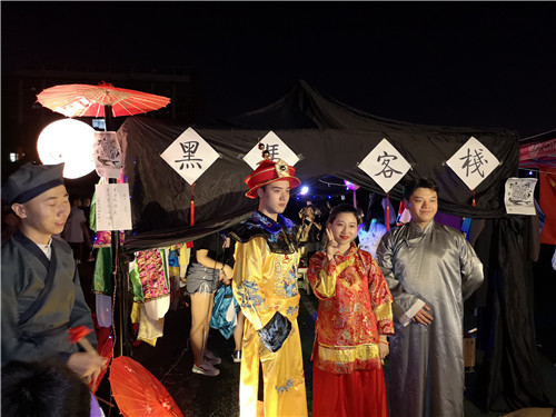 师生们在帐篷街里穿梭、灯笼路旁猜谜。楚艺书法协会赠送精美手写明信片、黑马话剧社的古装秀、DIY协会现场做香包、气球玩偶、创业协会的夹弹珠、youth英协的英语绕口令、单词接力游戏、辩论队的狼人杀和扑克牌、车协的脑筋急转弯和转盘抽奖、双截棍协会的猜歌名、猜谚语、下跳棋……各种游戏活动纷繁多彩,令人应接不暇。