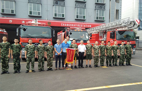 本网讯 6月20日,我校副校长邓建国及保卫处相关负责人和干事一行五人带着师生们的真诚谢意来到岳麓区五星消防中队,将一面写有“支持高校教育发展,军民共建和谐校园”的鲜红锦旗送给消防官兵,衷心感谢消防官兵多年来给予我校在学生安全、消防实操演练、重大活动消防保卫工作上的大力支持。