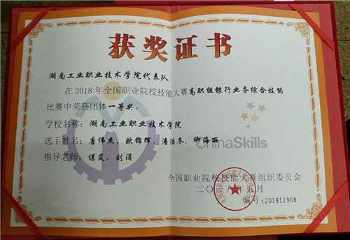 我校代表队“银行业务综合技能”赛项获奖证书