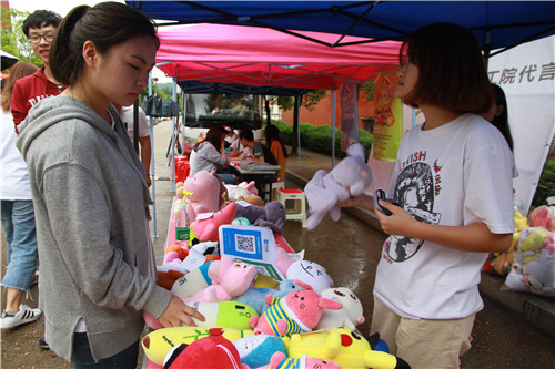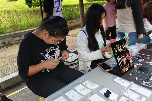活动现场细雨蒙蒙,阻挡不了同学们的热情。“摊主”们围绕“价格实惠、功能实用”等吆喝口号展开售卖。各摊位上商品玲琅满目,其中,手工制作品、楚艺书协的定制篆刻与字画颇受大家青睐。不少同学都在定制“专属”,“摊主”们则现场献技,精雕细刻。部分“摊主”出售的闲置玩偶、乐器等也受到广大同学们的喜爱,价格实惠,大家争相抢购。部分“卖家”的少量商品则由代售团队汇集后售卖,工作人员格尽职守,为“顾客”提供诚挚服务,也为卖家提供平台保障。