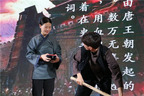 活动还开展了“黑马模仿秀”等游戏环节,邀请观众上台互动,一同体会表演的魅力。据悉,黑马话剧社是我校唯一一个立志于表演的社团,成立于2005年6月份,曾在2017年湖南省青年文化艺术节上获得金奖和优胜奖。