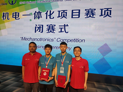 由电气工程学院刘德玉、刘良斌担任指导教师,电气专业周涛、机器人专业陈宇豪两位同学组成的代表队获得“机电一体化项目”二等奖;