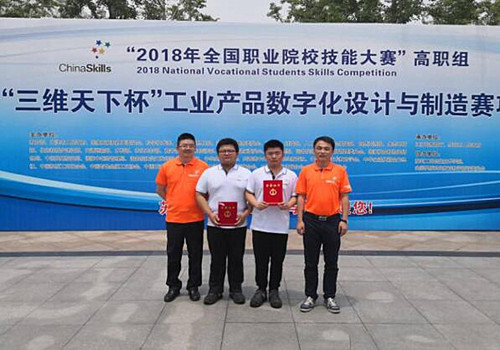 由机械工程学院欧阳陵江、易延辅担任指导老师,数控专业朱柏霖、宋姜杰两位同学组成的代表队获得“复杂部件数控多轴联动加工技术”赛项一等奖;