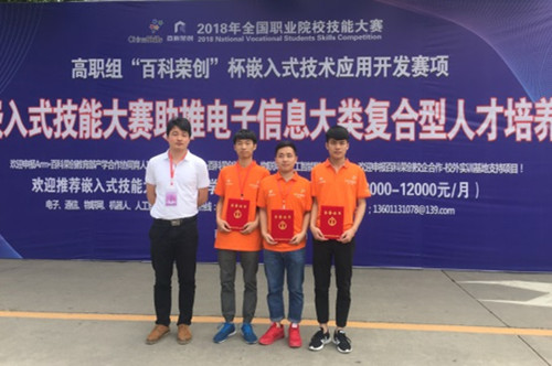 由电气工程学院赵自鹏、彭雯担任指导教师,电信专业刘浩、钟尚文、吴柄橙三位同学组成的代表队获得“嵌入式应用技术开发项目”二等奖;