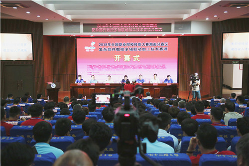 湖南省教育厅副厅长应若平、机械工业教育发展中心主任助理王志强、赛项专家组组长郭士义、赛项裁判长周明虎、赛项监督组组长杜嵩榕、我校校长向罗生以及赛项执委会、专家组、督导组、仲裁组、裁判组成员,各省市自治区代表队,九游·官方网站媒体单位以及我校师生代表参加此次开幕式。开幕式由我校党委书记刘建湘主持。