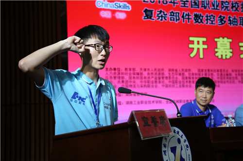 随后,应若平宣布: 2018年全国职业院校技能大赛高职组“复杂部件数控多轴联动加工技术”赛项正式开幕。来自全国28个省、市、自治区的51个高职院校代表队,102名参赛选手将展开为期4天的角逐。2名参赛选手组成团队,需要在赛场连续5个小时完成实际操作,比赛内容涵盖“工艺编制”、“复杂部件造型”、“数控多轴机床编程”、“高精度复合加工”、“零件装配及调试”等核心技能,并注重综合技术的应用,考核选手在比赛过程的工匠精神、职业素养与操作安全。