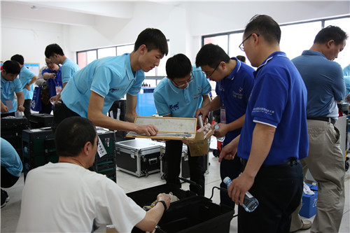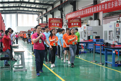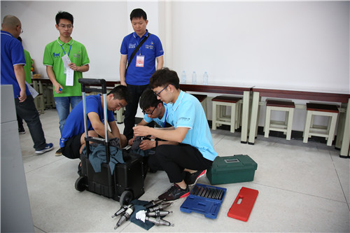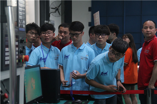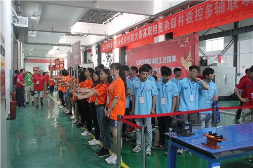 本网讯 5月15日,2018全国职业院校技能大赛高职组“复杂部件数控多轴联动加工技术”赛项开幕式后,来自全国各地的51支参赛队伍,分批次前往该赛项赛场——我校汽车大楼熟悉赛场,并再次检查确认竞赛刀具。