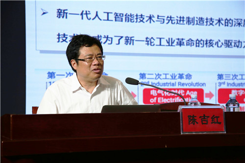 本网讯 5月16日上午,2018年全国职业院校技能大赛高职组“复杂部件数控多轴联动加工技术”赛项同期活动“智能制造与人才培养”论坛在我校多功能报告厅开讲。我校校友、国家数控系统工程技术研究中心主任、华中科技大学教授、博士生导师、武汉华中数控股份有限公司董事长陈吉红作题为“数控技术智能化转型升级与智能制造人才培养”主题讲座。