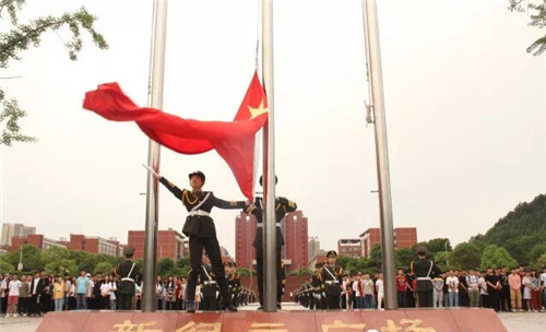 5月4日早上7点,我校团委组织的五四青年节系列活动之“高举团旗跟党走 百个支部同宣誓”拉开序幕。124个团支部,四千多名团员,高举右拳,重温入团誓词,铮铮誓词在广场上回荡,振奋人心,表达了青年团员的光荣和自豪。