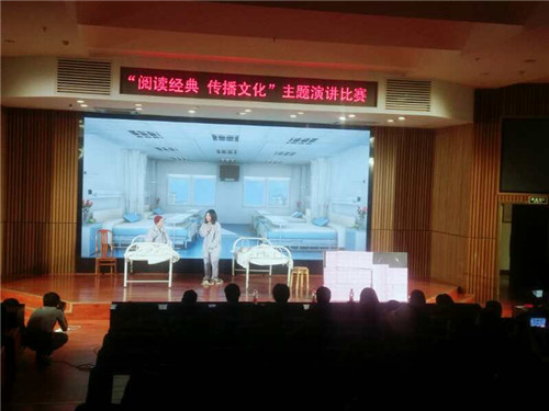 本网讯 正值第二十三个“世界读书日”来临之际,由图书馆主办、校读者协会承办的“阅读经典,传播文化”演讲比赛在图书馆多功能报告厅举行。比赛由校读者协会彭治源同学主持。