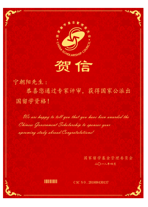 本网讯 近日,国家留学基金管理委员会通报了2018年经由留金委公派出国留学人员情况,我校宁朝阳教授获此殊荣。