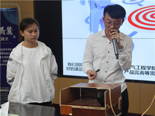 我校副校长邓建国、校团委书记黄敏、湖南大学科技园创业服务中心科创平台部部长翟荣军、麓客众创运营总监揭伟华现场观赛。中南大学原创新教育研究所所长、知名创新创业教育专家肖云龙,大妈中国执行董事、大妈俱乐部&想福品牌创始人、2017年度湖南省湘江新区双创新秀雷涛,岳麓区人力资源和社会保障局就业服务中心主任周湘,湖南省创造学会副秘书长胡新华、翟荣军担任本次大赛的评委,对大学生创新创业项目进行点评和指导。