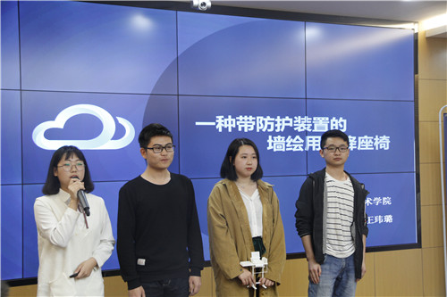 比赛过程中,各团队进行精彩的解说和答辩。5号团队在现场展示了“一种带防护装置的墙绘用升降座椅”3D打印模型,团队发言人介绍,该座椅可通过扶手旁边的按钮进行上下升降、左右平移,主要解决墙绘工作人员长时间站立、人工移动等问题。12号团队带来的“基于量子农法有机农产品精准扶贫商业模式”,项目将有机农肥低价卖给贫困地区的农民,农产品成熟之后,再帮农民把农产品通过网络渠道销售出去,助力“精准扶贫”工作。4号团队带来的“新媒体运营创业项目——互联网+生活+创业”,是以互联网+APP形式开展的一种全新媒体运营方式,目前该团队已在试运营,获得了不俗的订阅量……14个代表队展示了精彩的创业故事、与时俱进的创业项目和精准的商业模式。
