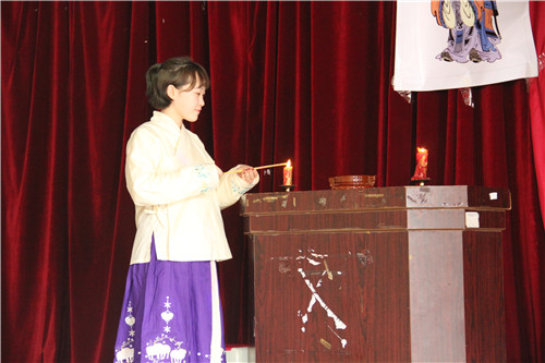 3月31日,由我校天心阁文学社礼韵汉服部主办的汉式成人礼上,天心阁汉服部部长文颖峥热情地向学生记者介绍道。“一针一线亲手缝制汉服仿佛能够触碰到传统汉文化的脉搏,此次汉式成人礼的部分服装就是我们自己制作的。”