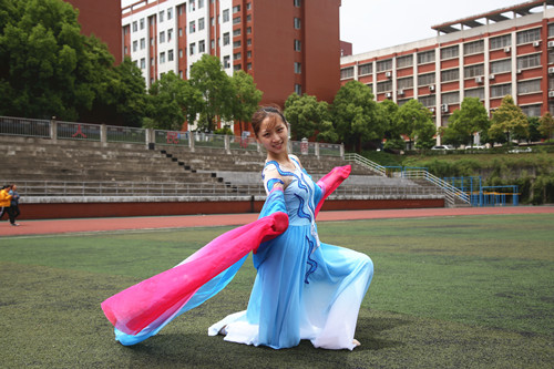 来自耒阳市第一中学的文颖参加了特长生测试最后一项的艺术生考试,她以优美灵巧的身姿,顺利地完成了考试要求的舞蹈动作,获得了考官们的一致认可。从小受周围环境耳濡目染,她一直都十分热爱舞蹈,渴望将来能够成为一名舞蹈老师。她表示,参加本次单招考试是对自己综合实力的一次检验,希望自己能够在新的学习环境中,学习到除舞蹈艺术外的更多专业技术知识,让自己有更强大的实力支撑舞蹈兴趣的发展。