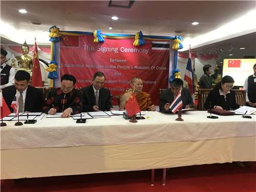 副校长董建国(左一)代表我校与泰国五个职教中心签约