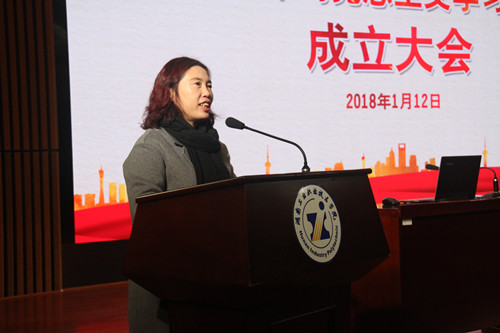 我校思想政治教育部部长苏茂芳主持成立大会